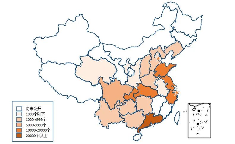 总体来看,在基站数量、覆盖范围、商用进展等方面,都呈现出东部沿海领先于内陆地区,南方领先于北方的特点。截至2019年底,全国共31省积极开展5G网络建设(不含港澳台),22省已公开发布基站建设数量,建成5G基站约14万。其中,广东基站数量在全国排名第一,超过3万;北京、浙江、上海、湖北、江苏、山东、重庆七省基站数均超过1万。